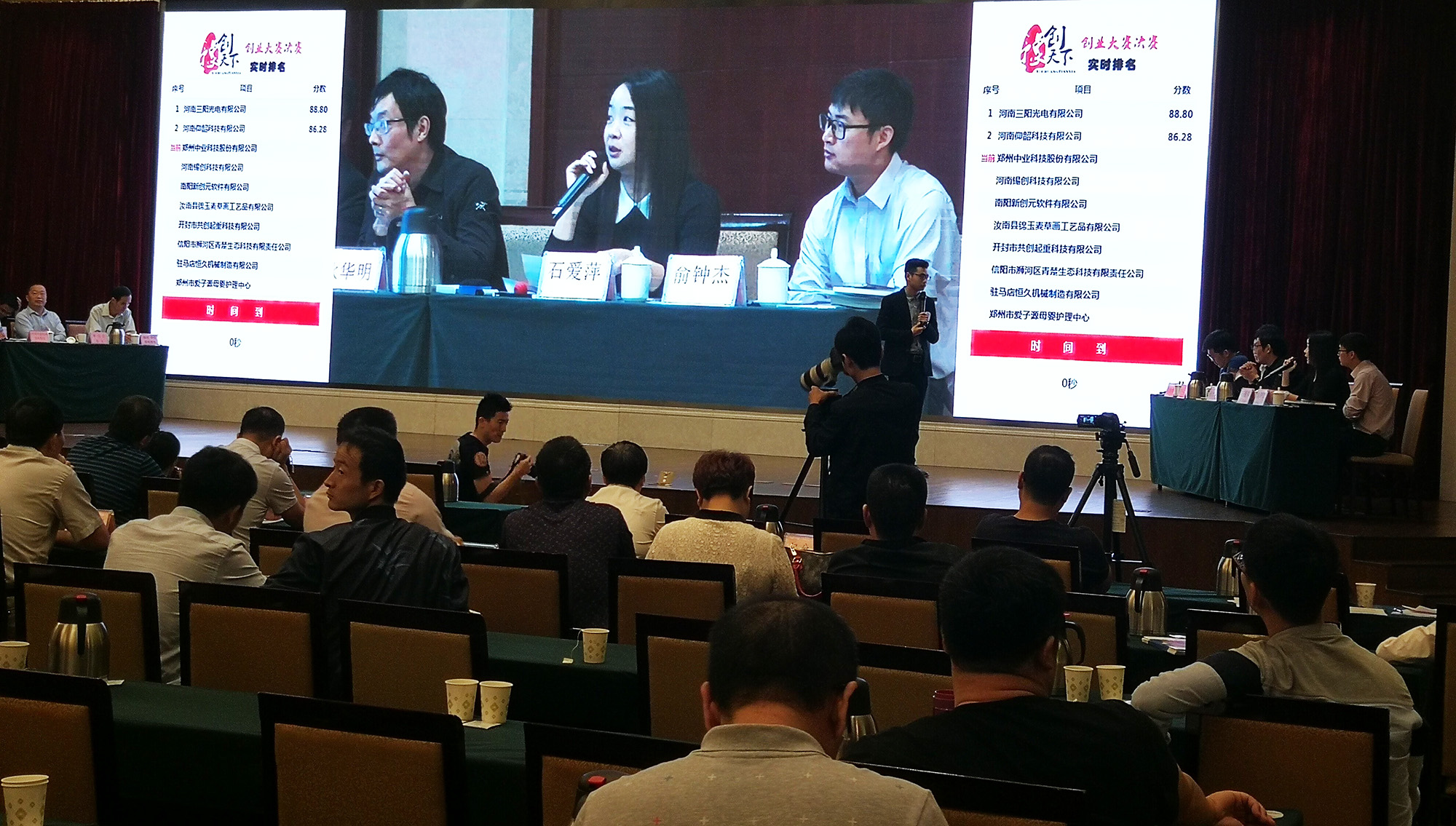 河南省《豫创天下》创业大赛的实时评分系统,用的是【纬地云】的“评分系统”系统,实现了:当场打分,当场出结果,动态排名,透明显示,“大众评委”支持支持率动态变化,点赞人数实时攀升,投资人心动意向表示,投资额当场输入,实时显示,融资意向选择当场锁定,以上内容全部在整合同一界面展示,效率高,公开、公正、透明,不给“人为插手”任何机会,彻底消除疑问和顾虑,做到比赛无争议;大众参与度高,整场跌宕起伏,扣人心弦,环节紧凑,有序可控,确保比赛在网络科技的氛围中完美收官。
